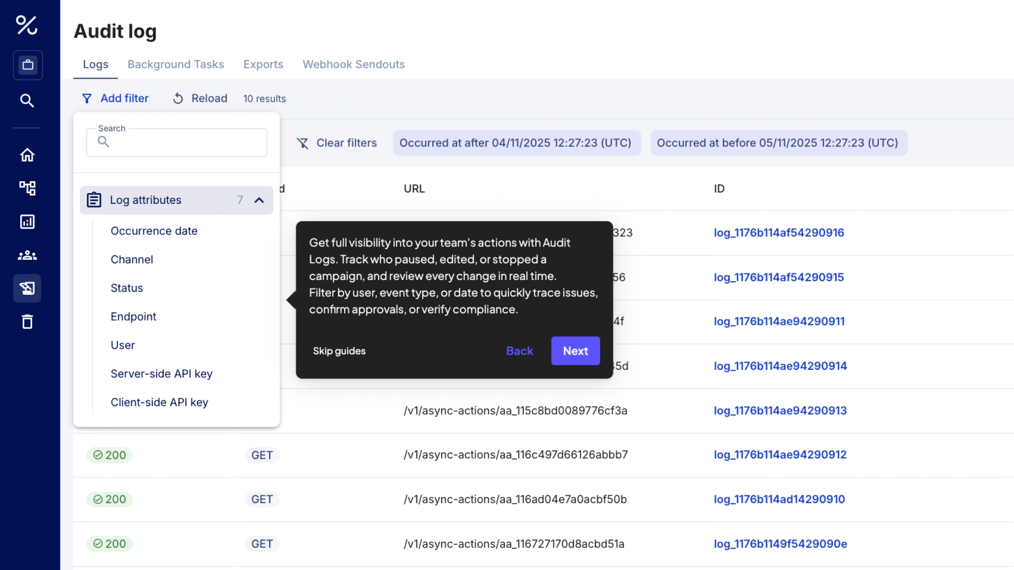 - Roles and approvals: Control who can launch, edit, or kill campaigns.